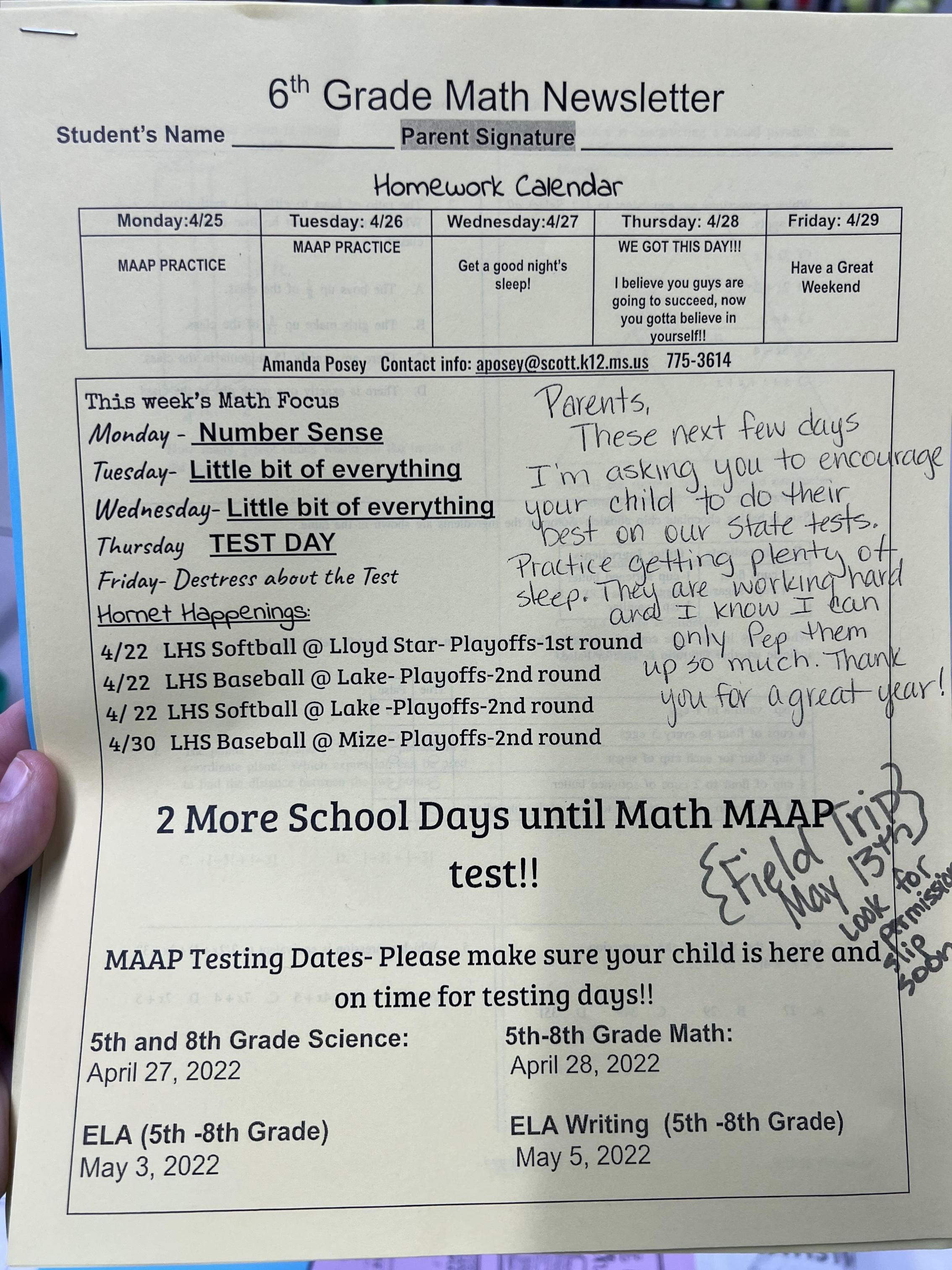 This handout will be given out Thursday. If they lose there copy, they my print this one. We will use this for the next couple of weeks in addition to their workbook.